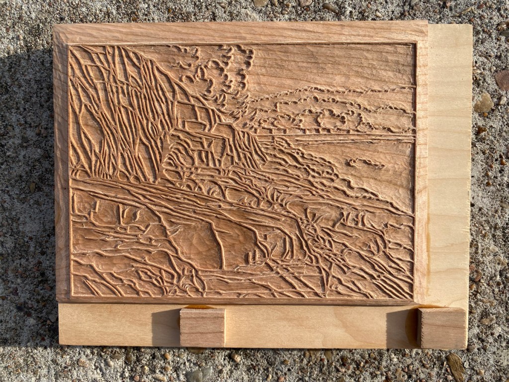 My hope for this print is that I can move in the direction of the subtlety and detail of some of the shin-hanga prints. This is an open question at this point! I think it is possible that many of the lines of this block may get replaced later by lines on other blocks, and so be carved away. (This is called “mudabori”, or “wasted carving.”)