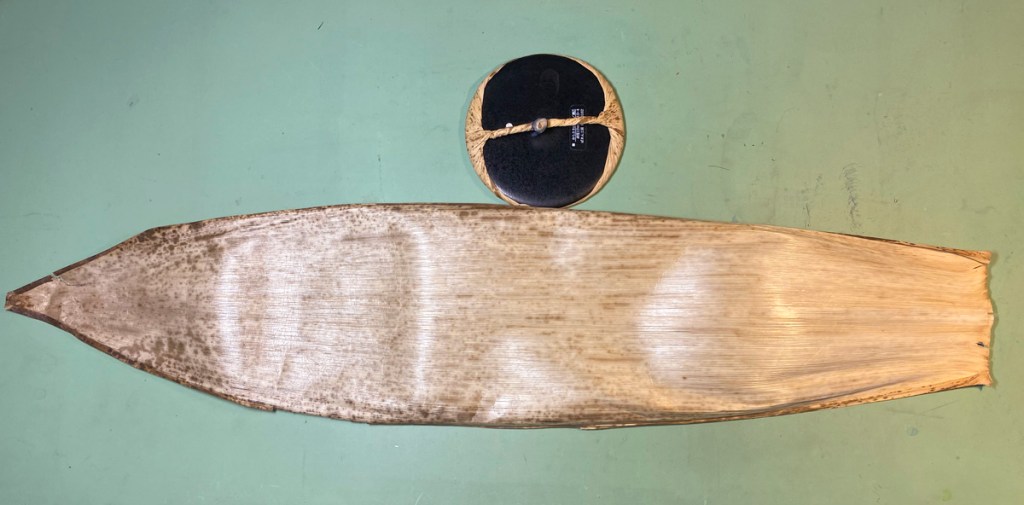 After cutting part of the widest end away, and tearing off the curled edges on the sides (about 1/4″ or so) , I started wrapping the skin.