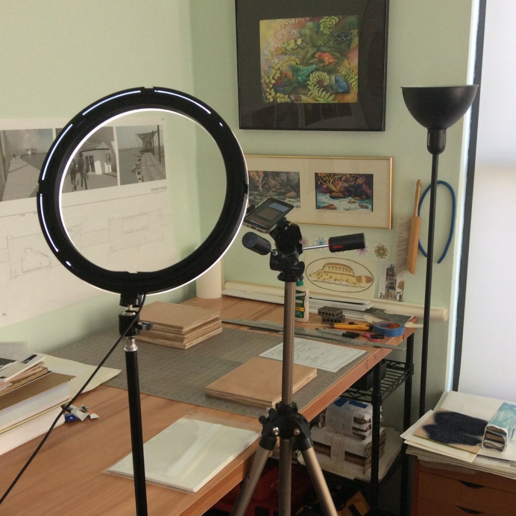 In conjunction with PrintExpo, I am working on a video demonstrating most of the steps in producing a print. I started recording content a few days ago! Here’s one setup: