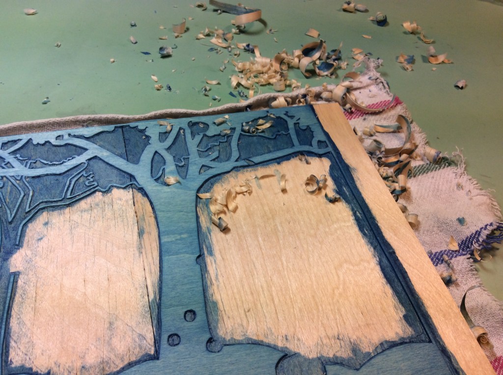Everything is glued with Titebond III, waterproof and outdoor-rated — except the layers of the plywood. So I can’t submerse the whole thing. But hopefully, the kento extensions will remain stable throughout carving and printing.