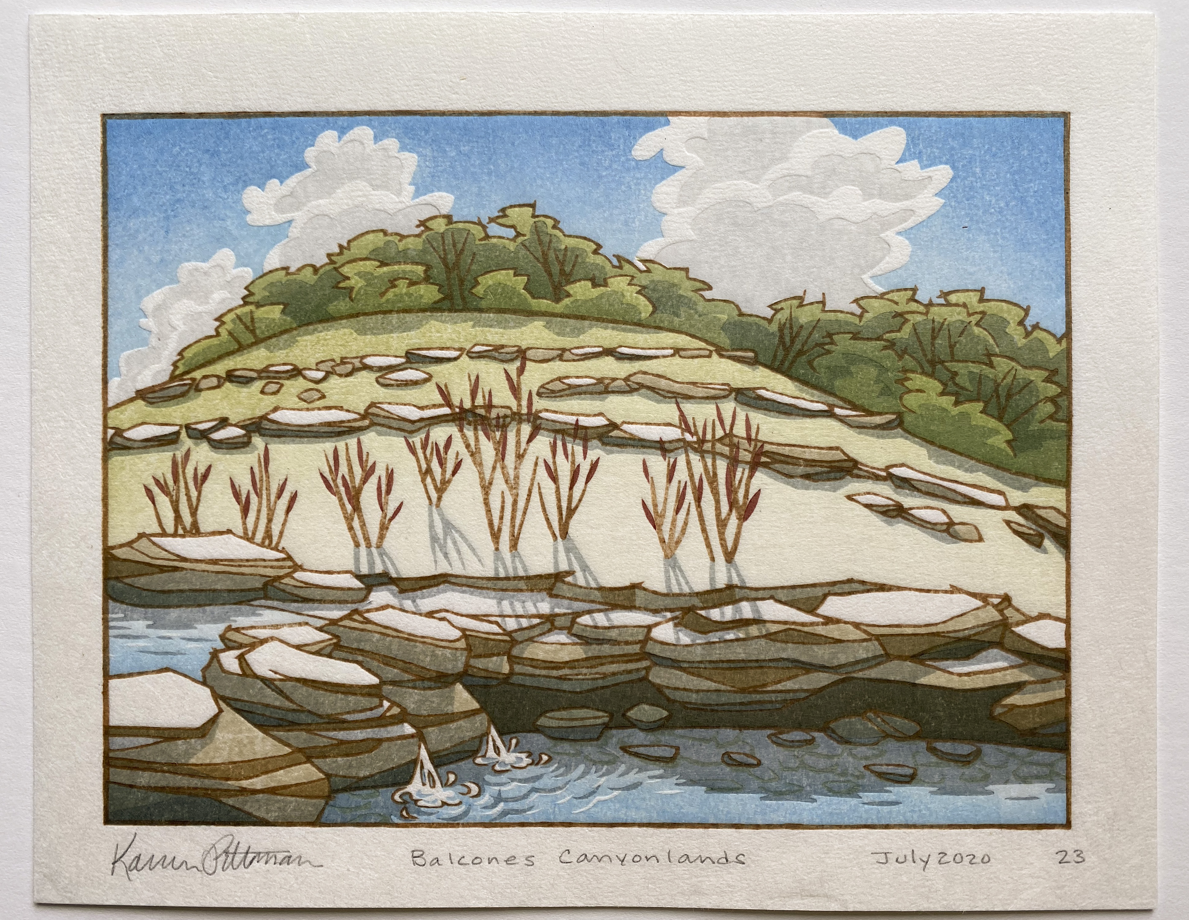 Hand carved, hand printed woodblock print on Kizuki or Shin Hosho (handmade Japanese mulberry papers), including first class shipping within the U.S.A