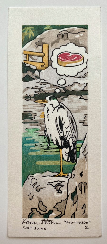 Hand carved and hand printed woodblock print on Echizen Kozo (handmade Japanese mulberry paper), including first class shipping within the USA.