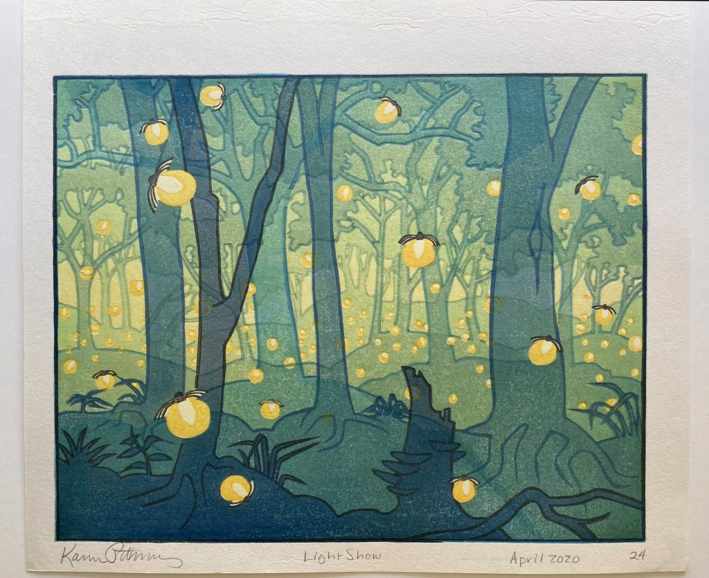 Hand carved, hand printed woodblock print on 100% mulberry paper