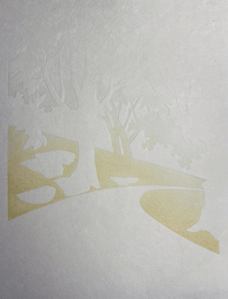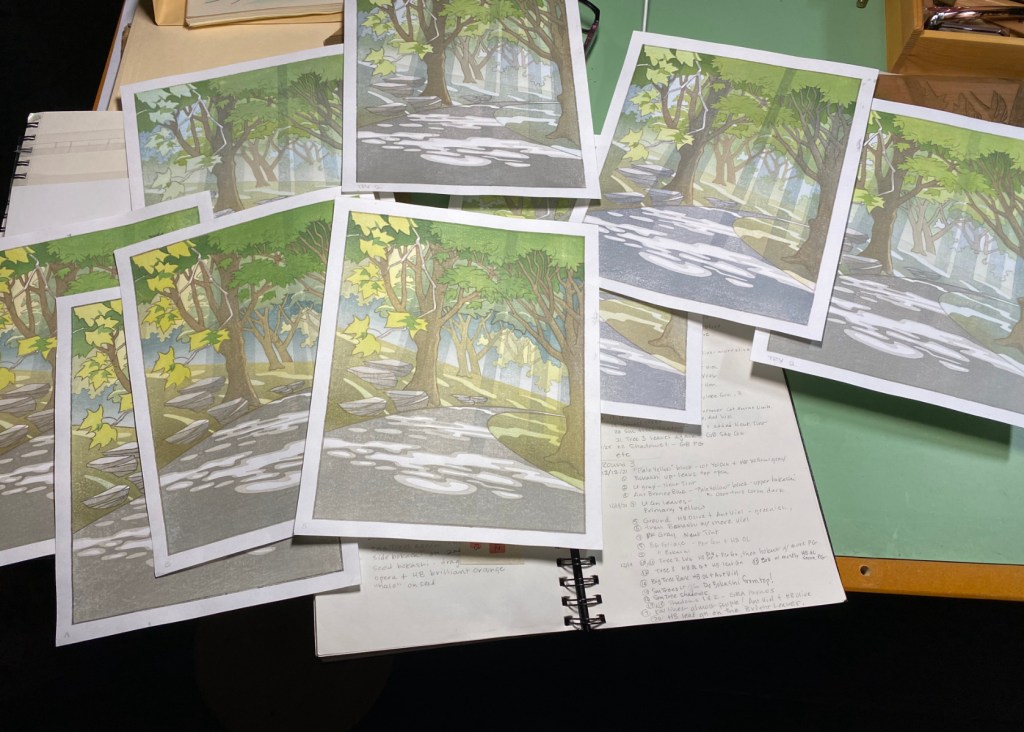 My new print is inspired by a watercolor sketch she did, in “false color”, of the Mora River in New Mexico. I think it was a sketch made on site. Since she is no longer around to give her input, I can’t really call it a collaboration, but I think she would approve!
